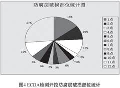 ECDA是對管道外腐蝕情況和防腐系統狀況進(jìn)行科學(xué)檢測和評價(jià)的主要方法。 外腐蝕直接評價(jià)防腐層破損點(diǎn)分析統計, 不僅可以明確造成管道腐蝕的根本原因、 防腐層缺陷類(lèi)型、 可能的影響因素和可能造成的后果; 還可以使管理者明白管線(xiàn)哪些位置是防腐層破損高發(fā)點(diǎn), 明確管線(xiàn)存在什么樣的腐蝕威脅及采取何種措施。