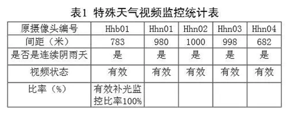 考慮陰雨等特殊天氣,按照蓄電池放電深度為75%計算,每天負載耗電量為1623WH。則7個(gè)連續陰雨天需要蓄電池容量為1623×7/24/0.75=630AH,根據選型規則選擇12V/200AH膠體蓄電池,則選用12V/200AH蓄電池6塊,組成24V/600AH蓄電池組,滿(mǎn)足設備連續7個(gè)陰雨且無(wú)風(fēng)天氣條件下風(fēng)光互補供電仍可以正常工作,詳見(jiàn)表1。實(shí)施后有效補光監控比率達到100%,措施有效。