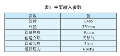 以具體某管道的一高后果區管段為例進(jìn)行計算,主要輸入的參數見(jiàn)表2。