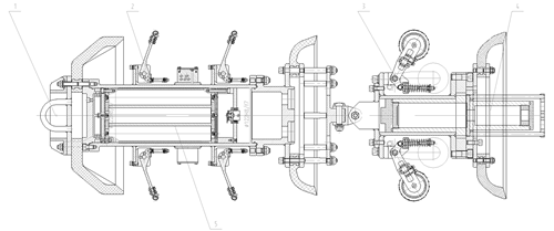 1、驅動(dòng)皮碗 2、探頭部分 3、里程輪部分 4、標記系統 5、記錄儀部分