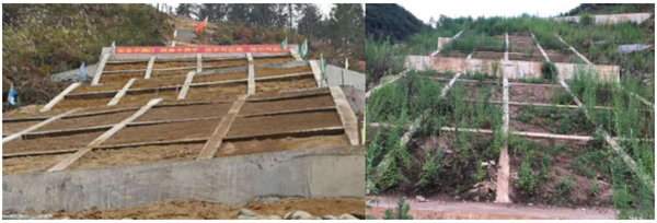 生物防治較工程防治費用小、效益高,能從根本上減輕水土流失,改善生態(tài)環(huán)境,使泥石流形成條件日趨退化,應結合流域實(shí)際,分析氣候和地勢條件,利用護坡、植被綜合治理(圖11)。