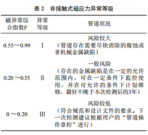 檢測完成后,選擇部分異常點(diǎn)進(jìn)行開(kāi)挖,對磁應力檢測結果進(jìn)行修正。如果開(kāi)挖評價(jià)結果比磁檢測結果評價(jià)輕,應按開(kāi)挖評價(jià)結果適當提高該管段的磁異 常綜合指數F值;如果開(kāi)挖結果比磁檢測結果嚴重,應適當降低F值;如果開(kāi)挖結果比磁檢測結果嚴重很多,應降低F值,重新排列開(kāi)挖點(diǎn),并對這種情況的磁異常段進(jìn)行優(yōu)先開(kāi)挖。
