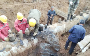 在一段修復過(guò)盜油支管的管道上又發(fā)現兩處新增支管,累計支管數量達到12個(gè)(圖 8),現場(chǎng)開(kāi)挖時(shí)發(fā)現部分已出現滲油現象(圖 9),目前該段管道已做換管處理。