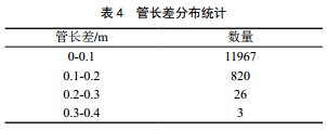 整體管長(cháng)差分布情況如表 4所示。