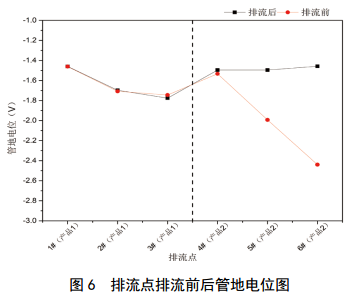 分別測試6處排流地床連接前后管道和固態(tài)去耦合器的運行參數,對比分析2家產(chǎn)品的性能差異和其對管道的電位影響。