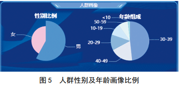 利用LBS位置大數據可以刻畫(huà)出監視區域內的人群特征、行為偏好、來(lái)源地等信息,提供人群年齡分布、性別比例、個(gè)人喜好、來(lái)自哪里等人群特征,為油氣管道突發(fā)事件的應急處置與輔助決策提供參考。圖5、圖6所示為L(cháng)BS位置大數據監測預警系統展示蘭成渝成品油管線(xiàn)某高后果區的人群畫(huà)像。