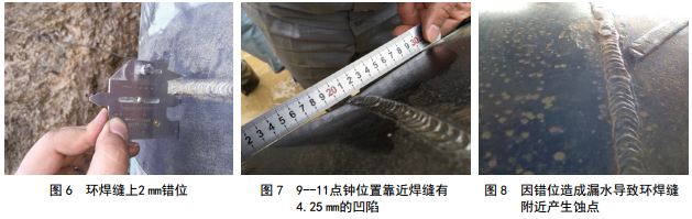 SCT能夠檢測焊縫附近或焊縫上是否存在焊接缺陷或腐蝕。案例中, SCT檢測到一個(gè)腐蝕點(diǎn),尺寸為 638 mm×180 mm,最大深度為壁厚的8% 。 管道壁厚沿環(huán)焊縫方向發(fā)生變化,為了管道對齊導致管道另一側產(chǎn)生凹陷。 圖 6顯示12點(diǎn)鐘位置的焊縫錯位,圖 7顯示10點(diǎn)鐘位置的凹痕。圖 8所示為錯位和凹陷導致涂層下進(jìn)水并引起點(diǎn)狀腐蝕。
