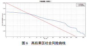 傷亡10人以上的社會(huì )風(fēng)險處于不可接受區域內,傷亡100人以上的社會(huì )風(fēng)險概率為1E-7.2/a,大于社會(huì ) 風(fēng)險概率1E-8/a的要求,如圖 6所示。