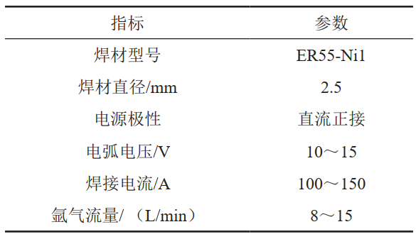 以Φ1219 mm×18.4 mm管道為例,氬弧焊選用大西洋CHG-55C1的ER55-Ni1焊絲。焊接工藝參數見(jiàn)表 1。