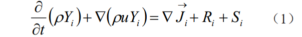 式中:Ri為第 i 組分化學(xué)反應速率,kgmol/(m3·s);Si為擴散相加用戶(hù)定義的源項;Jj為組分 j 的擴散通量,mol/(m2·s);Yi為第 i 種物質(zhì)的質(zhì)量分數,% ;u為流體流速,m/s;ρ為密度,kg/m3;t為時(shí)間,s 。