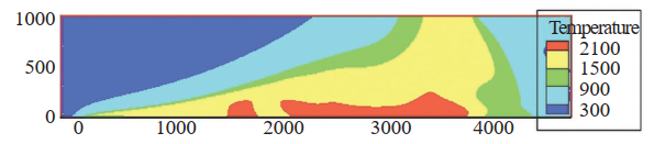 某埋地含硫天然氣管道,取計算管長(cháng)間距為5 km, 管道外徑650 mm,埋深1.5 m。管道上層土壤為多孔介質(zhì),孔隙度為0.267,密度為2650 kg/m3,導熱系數1.512 W/m·K。高含硫天然氣持續泄漏著(zhù)火的模擬區域范圍為5000×10011.5 m:泄漏口中心在x=0、y=﹣1.5處,泄漏口直徑為0.05 m,泄漏速度為252 m/s,泄漏方向垂直向上,火源在泄漏口附近。天然氣中甲烷(CH4)體積分數為95%,硫化氫(H2S)體積分數為5%;空氣組分中甲烷的爆炸體積濃度區間為5%~15%,硫化氫的爆炸體積濃度區間為4.3%~46.0%;硫化氫的中毒體積濃度下線(xiàn)為0.001%,二氧化硫(SO2)的中毒體積濃度下限為0.04%;泄漏氣體溫度相同為300 K,環(huán)境溫度與天然氣溫度相同;大氣壓力為101325 Pa;風(fēng)速為4 m/s;空氣中氮氣組分占78%,氧氣占22%。