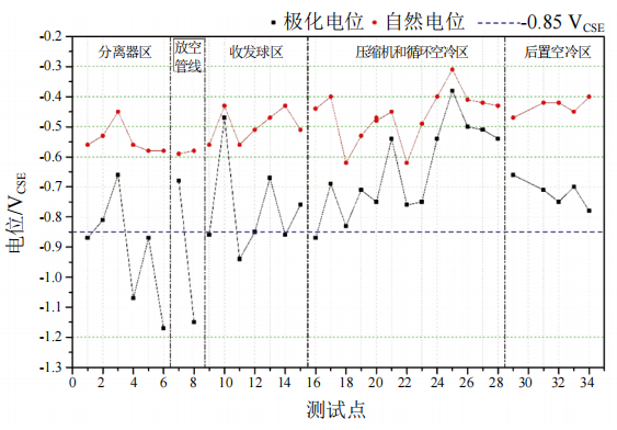 (2)需要定期對站場(chǎng)區域陰極保護系統進(jìn)行測試評價(jià),及時(shí)發(fā)現存在問(wèn)題,并針對性整改。