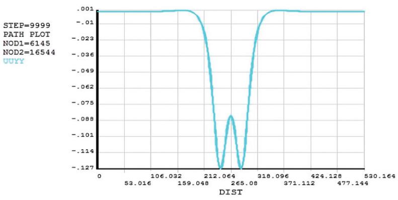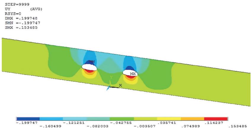 圖 3 隧道開(kāi)挖后土層縱向位移( m)