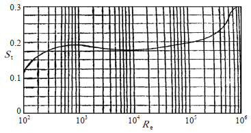 據此查得斯托勞哈爾數St=0.262。