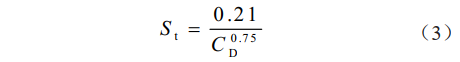 根據霍爾納(Hoerner)經(jīng)驗關(guān)系式(3)也可求得St:
