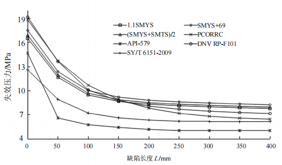 圖 3 X42管道失效壓力隨缺陷長(cháng)度L變化圖