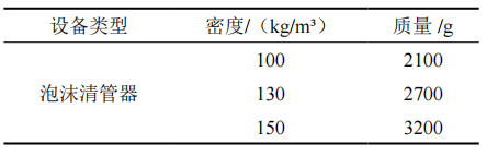 設計并加工3種不同密度的泡沫清管器(圖 2),其長(cháng)度和外徑相同,分別為370 mm 和270 mm,其他參數詳見(jiàn)表 3;設計加工1種全聚氨酯清管器,長(cháng)度430 mm,外徑 268 mm,皮碗數量4個(gè)。