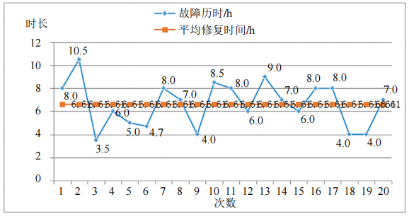 從圖 3所列20起斷纜修復時(shí)長(cháng)統計看,平均需要6.61小時(shí),意味著(zhù)相關(guān)聯(lián)的站場(chǎng)、閥室的生產(chǎn)數據在至少6.61小時(shí)內可能處于失控狀態(tài),對自動(dòng)化程度居高的閥室、站場(chǎng)以及長(cháng)輸管道安全運行造成嚴重威脅。