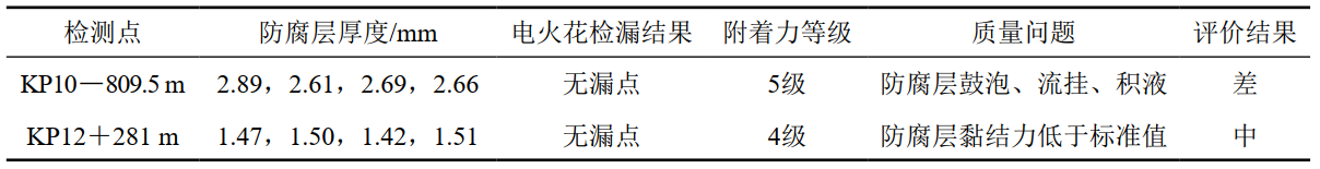 表 2 聚氨酯防腐層檢測結果