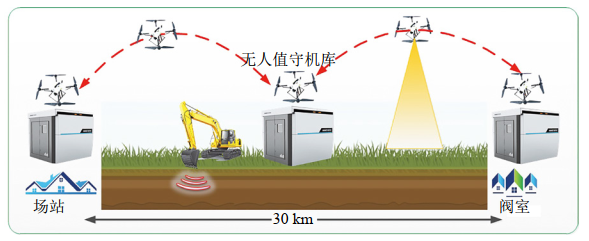 (2)系統聯(lián)動(dòng)。部署了光纖振動(dòng)預警系統、地災監測預警系統和智能攝像頭的“高后果、高風(fēng)險”區域,由于光纖預警和地災監測存在誤報率高、智能攝像頭存在監控盲區等問(wèn)題,在預警系統報警后,其報警位置信息與無(wú)人值守機庫共享,快速啟動(dòng)無(wú)人機到達現場(chǎng)進(jìn)行數據采集和視頻拍攝并實(shí)時(shí)回傳巡檢系統,判斷管道周邊異常態(tài)勢。管理人員借助無(wú)人機巡檢情況,遠程判斷管道風(fēng)險并做出決策。