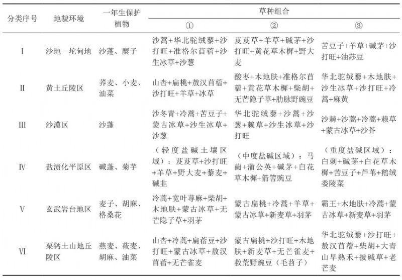 表 1 地貌環(huán)境與不同草種組合列表