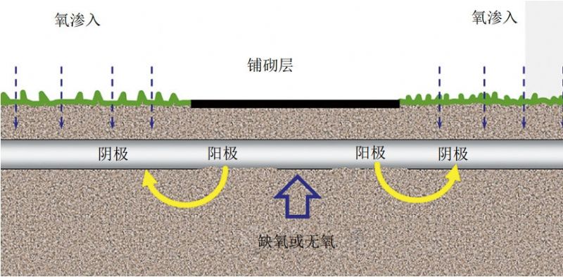 圖 8 穿路管道氧濃差腐蝕電池形成