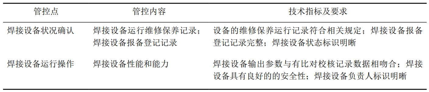 表 3 焊接設備的質(zhì)量關(guān)鍵點(diǎn)