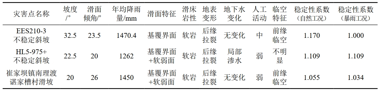 表 4 典型地質(zhì)災害點(diǎn)參數