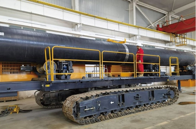 雙連管工藝是提前將兩根鋼管預制焊接在一起,具有減少主線(xiàn)路管道現場(chǎng)組對和焊接焊口、提升施工效率、縮短施工周期等優(yōu)點(diǎn)。西氣東輸四線(xiàn)新疆段沿線(xiàn)大部分地區屬于無(wú)人區,以平坦開(kāi)闊的戈壁荒漠為主,具備雙連管預制施工的良好條件。借鑒中俄原油管道一線(xiàn)俄羅斯境內段、沙特管道雙連管和國內西氣東輸二線(xiàn)管道工程應用雙連管經(jīng)驗,國家管網(wǎng)集團建設管理分公司甘寧工程項目部在西四線(xiàn)一標段開(kāi)展了油氣管道工程雙連管規;瘧贸商准夹g(shù)的研究和驗證。