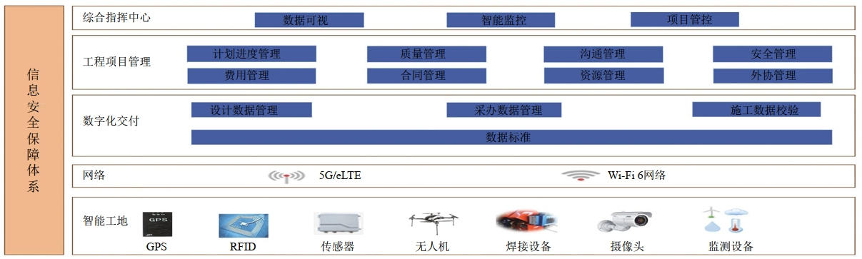 油氣管道建設是一項涉及眾多領(lǐng)域、工序繁雜的工程。在管道建設過(guò)程中,管理者需要實(shí)時(shí)掌握各類(lèi)信息,用以管理和指導建設工程進(jìn)度、質(zhì)量和安全,保證項目各環(huán)節受控。在智能化技術(shù)快速發(fā)展的大背景下,傳統的管道建設管理方式已無(wú)法滿(mǎn)足現實(shí)要求。以智能工地技術(shù)與裝備為基礎,應用物聯(lián)網(wǎng)、大數據、人工智能、邊緣計算等前沿技術(shù),為油氣管道建設工程管理提供了解決方案。