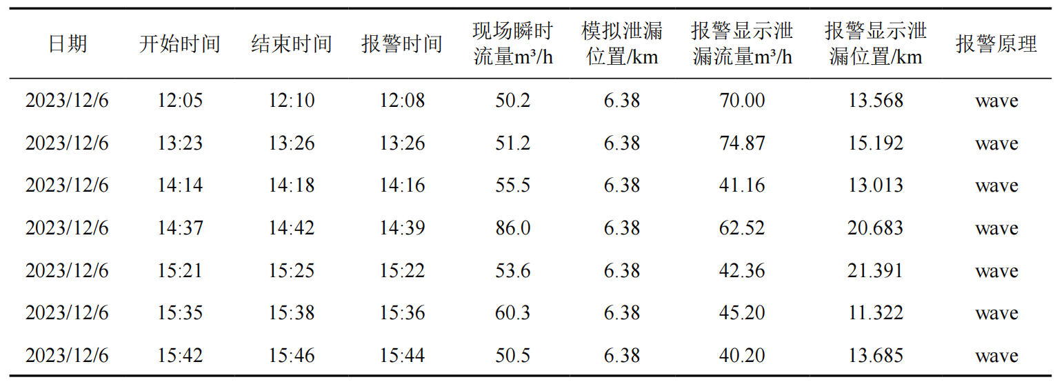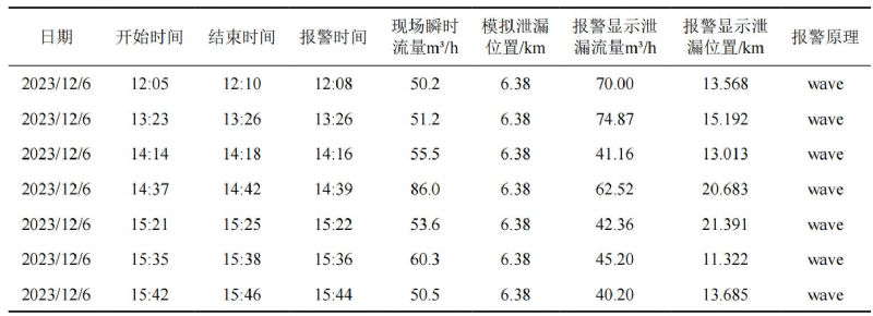 從現場(chǎng)模擬泄漏測試7次報警中可以看出,7次均判斷出管道發(fā)生了泄漏,但泄漏檢測報警定位卻出現嚴重偏差。
