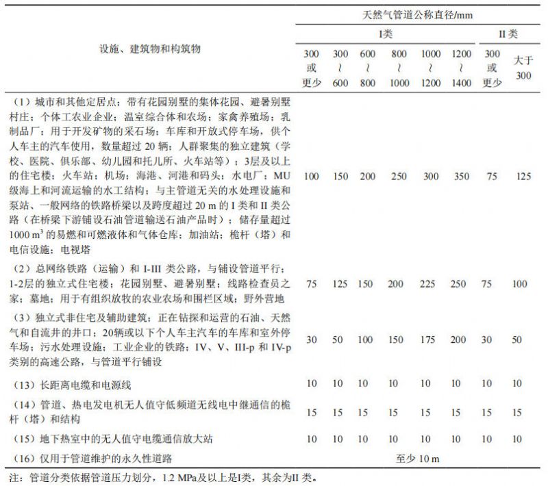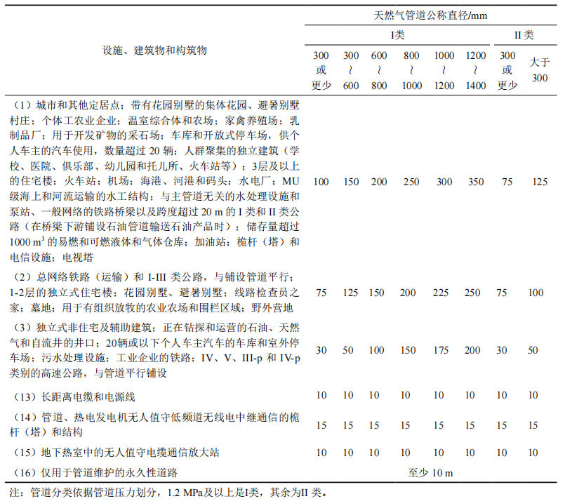 表 1 烏國天然氣管道和建筑物、構筑物的最小距離(節選 單位: m)