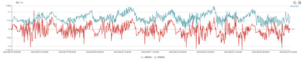 (2)潮汐加地磁干擾。在有地磁暴發(fā)生時(shí),一些高緯度沿海地區還可監測到地磁與潮汐的疊加干擾。2025年8月19日發(fā)生地磁暴期間,某管段電位圖除了有潮汐干擾的特征外,還受地磁暴影響電位持續波動(dòng)(圖 5)。