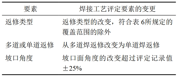 表 6 2023版標準中返修焊的焊接工藝評定基本要素