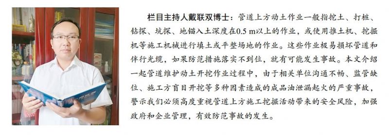 一起違章動(dòng)土開(kāi)挖作業(yè)導致成品油管道泄漏起火的嚴重事故